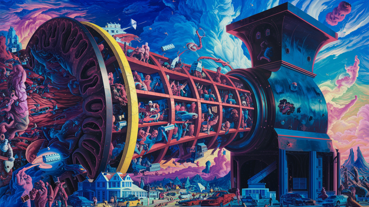 А мы все стоим на вершине кучи, запихнутой в жерло дьявольского прибора и с каждым поворотом ручки опускаемся ещё чуть ближе к вертящимся остриям, которые уничтожают день за днём наш привычный мир, нашу нормальную славную жизнь, превышает в жуткое месиво из смертей, потерь и разочарований. Перерабатывая в пыль, в слизь, труху и требуху все, что мы любили , чем гордились, ради чего тяжело работали. Нас тянет вниз и мы, похоже, действительно рухнем под эти ножи, если не пройдет чудо.