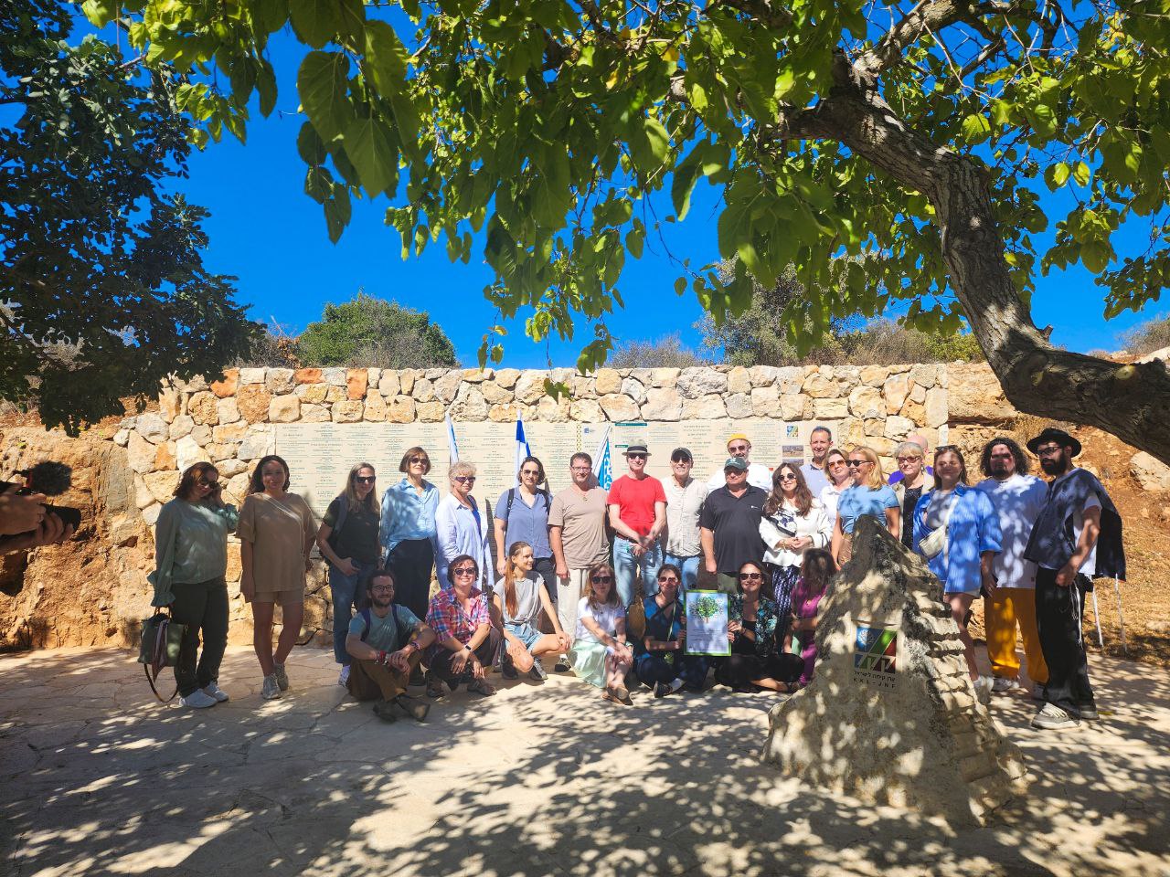 Табличка установлена в знак благодарности русскоязычному израильскому сообществу, которое собрало средства на восстановление лесов Керен Каемет ле-Исраэль, пострадавших от пожаров, вспыхнувших в День Независимости Израиля весной 2025 года.