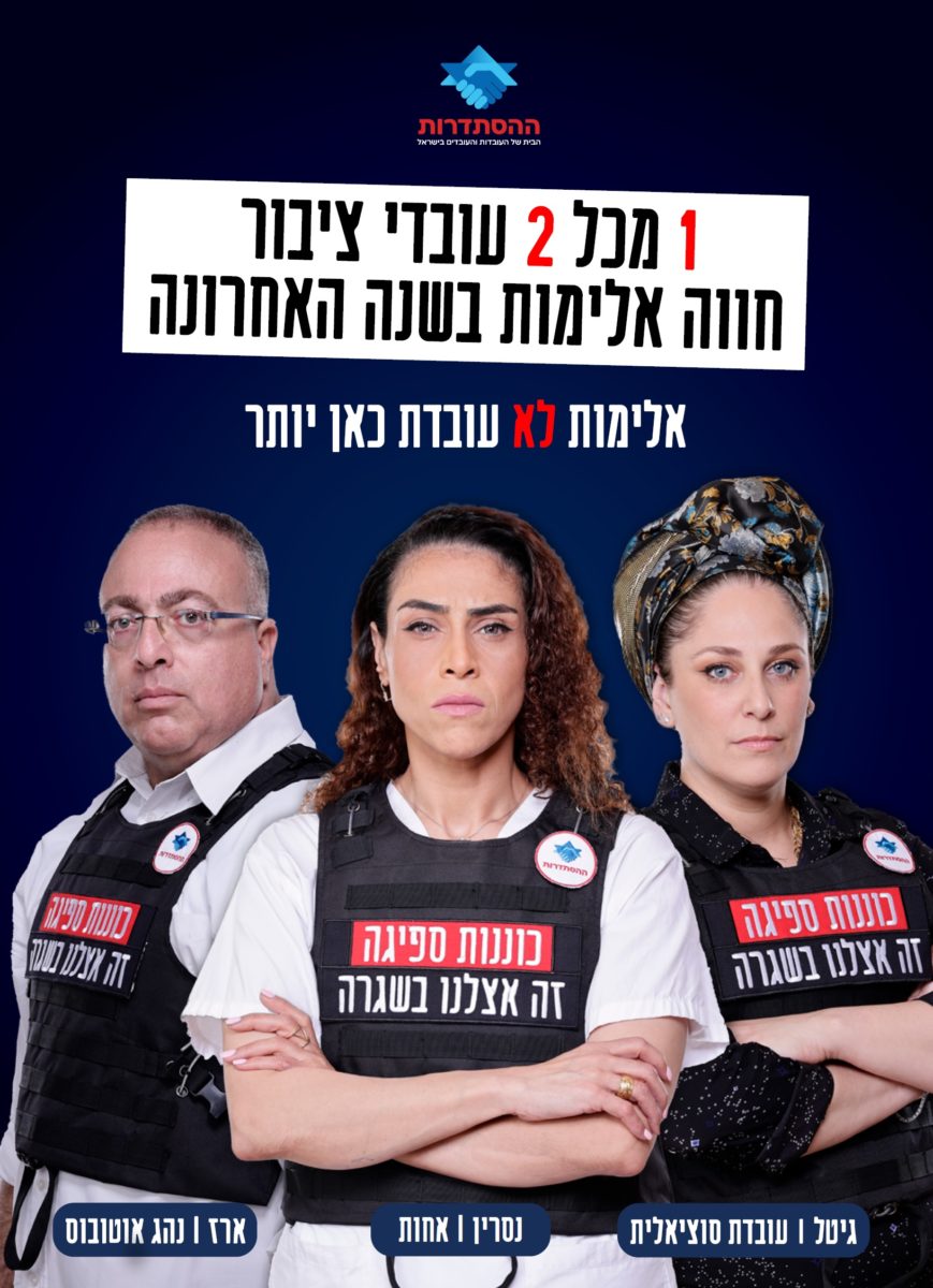 На фоне роста насилия в отношении государственных служащих председатель Гистадрута Арнон Бар-Давид заявил: «Если в ближайшие десять дней не будут предприняты эффективные шаги со стороны государственных учреждений по прекращению насилия в отношении работников, предоставляющих услуги населению, я объявлю состояние всеобщего трудового конфликта в общественном секторе, и каждую неделю буду включать новые секторы экономики в забастовки солидарности — начиная с медицинского персонала и работников общественного сектора и до водителей общественного транспорта».